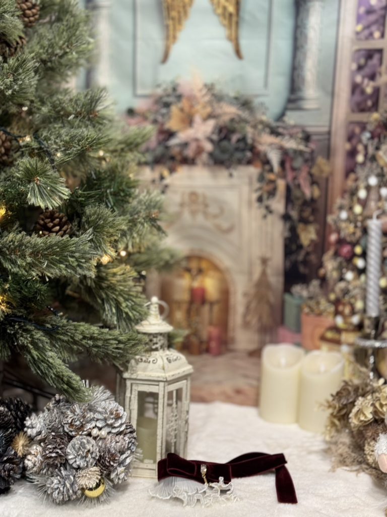 Happy Holidays! 当店のフォトブースにもクリスマスツリーが出現🎄 ロウソクやランタンで優しい光を演出しつつ、特製のベロアのリボンタイをつけて撮影いたします。 素敵なクリスマスの思い出の1ページになりますように🎁